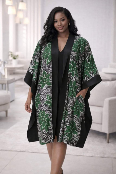 Ankara and Satin Kimono Jacket